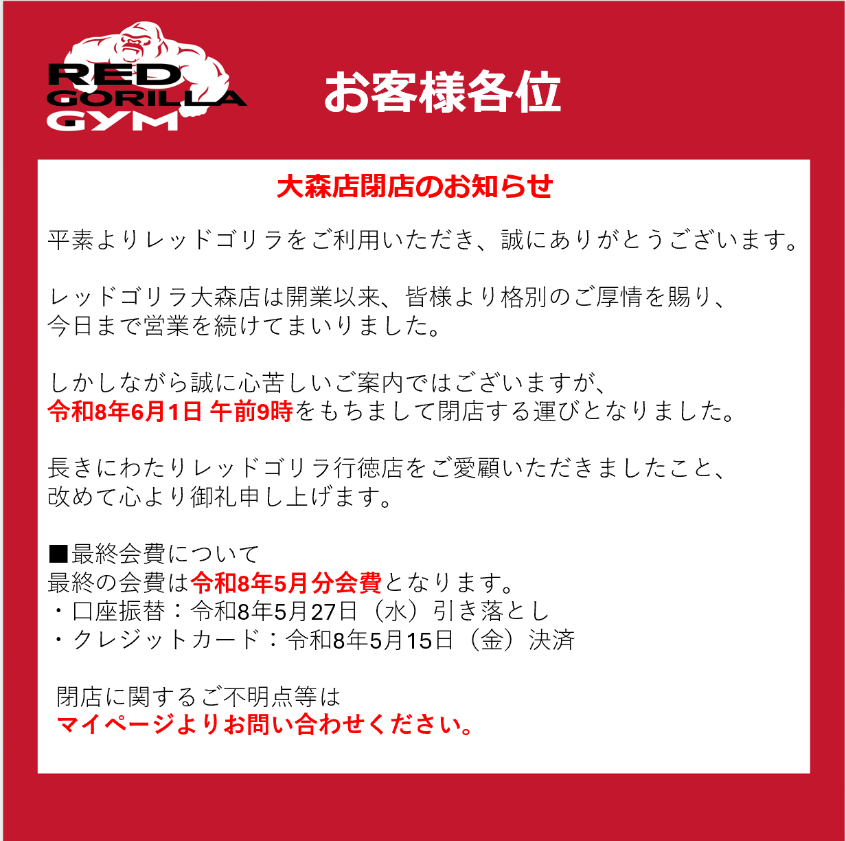 大森店のお知らせ