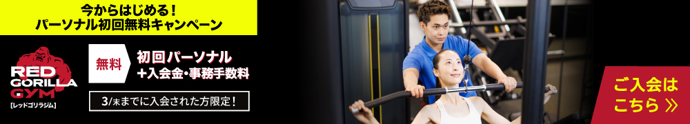 ※入会者全員に初回パーソナル無料クーポンプレゼント ※会費発生から6ヶ月以上継続して利用することを適用条件とします。